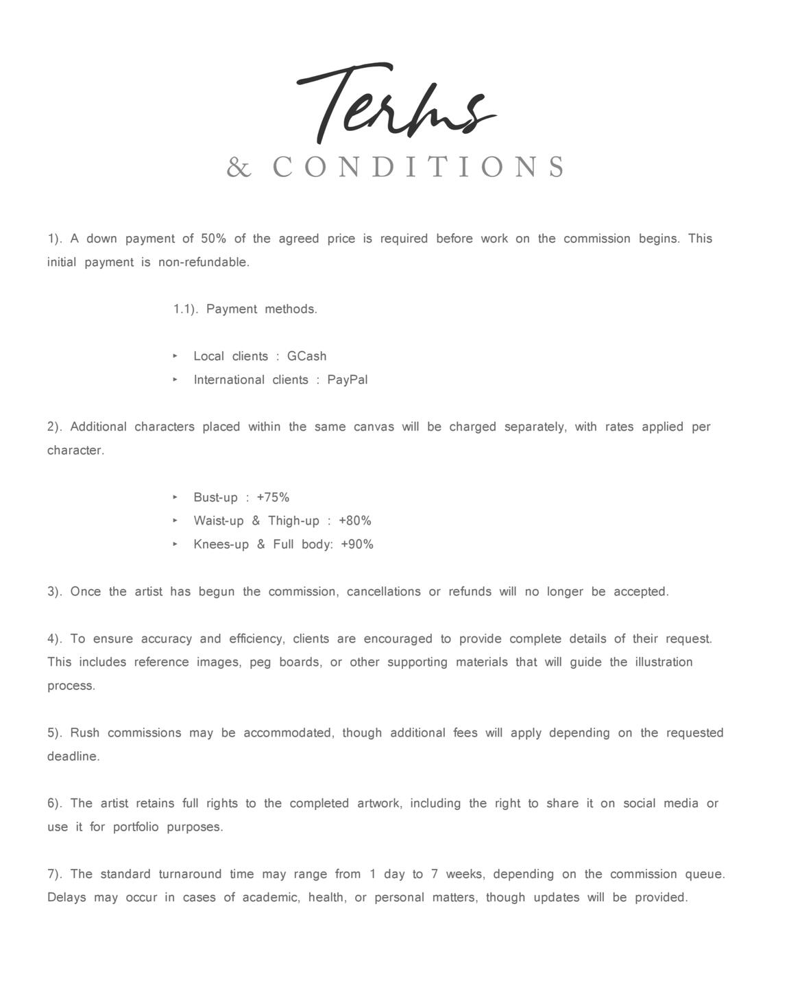 The following list is arranged in no particular order and reflects the current waiting list for commissions scheduled from mid-September through December. Rush orders are strongly discouraged, as they may affect both the schedule and the quality of the final output.