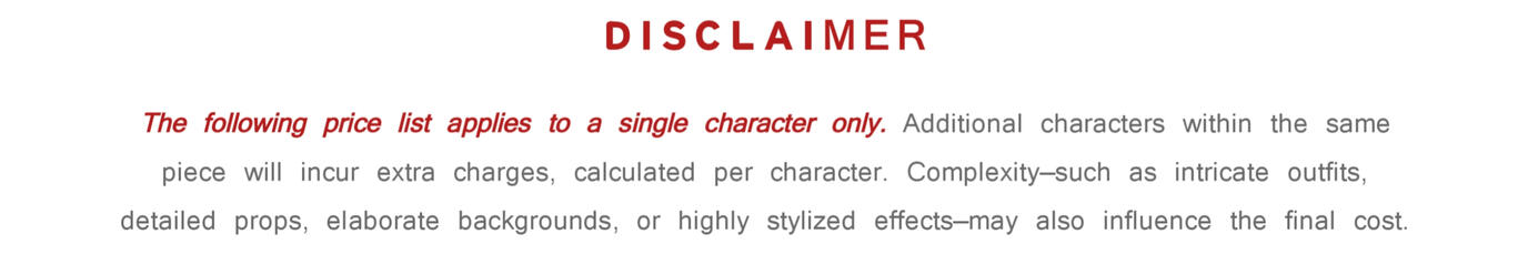 | 4). Notes | ▸ Fees are separate from commission price. | ▸ Final pricing may vary depending on complexity, scale of distribution, and usage duration | ▸ Failure to disclose commercial intent beforehand may result in revocation of usage rights or additional charges. |